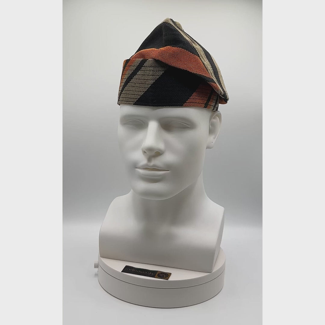 The Yoruba Aso Oke Fila represents far more than headwear—it embodies cultural authority and social standing within Yoruba tradition. Handcrafted from authentic Aso Oke fabric, this traditional Gobi cap serves as a powerful symbol of masculine identity, respect, and leadership both within the home and across society. Each styling method carries distinct significance, allowing the wearer to communicate their social status, occasion, and role within their community. Whether worn at ceremonies, family gatherings, or formal events, the Fila establishes the wearer's position with unmistakable dignity. The versatility of this cap lies in its multiple wearing styles—each configuration reflects different cultural meanings and hierarchical positions. Crafted with meticulous attention to traditional methods, this piece connects the modern wearer to centuries of Yoruba heritage and ceremonial practice. An essential investment for those seeking to honor their cultural roots with authenticity and pride.